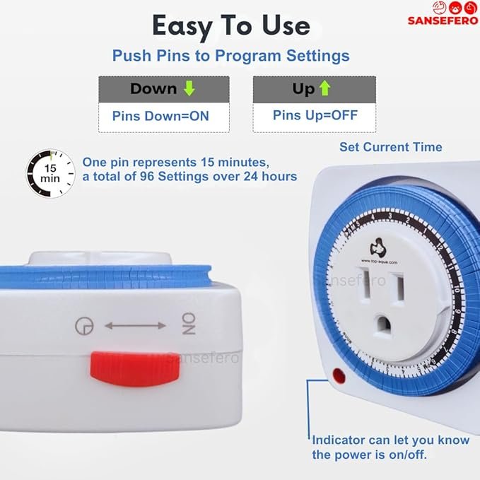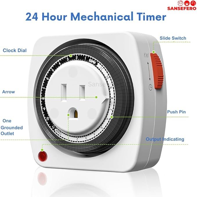 - Premier Plants 24 Hours Timer Plug-in Mechanical AM/PM Display Timer Switch With Grounded Aquarium, Grow Light, Hydroponics, Pets, Home, Kitchen, Office, Appliances (V-TM-24)